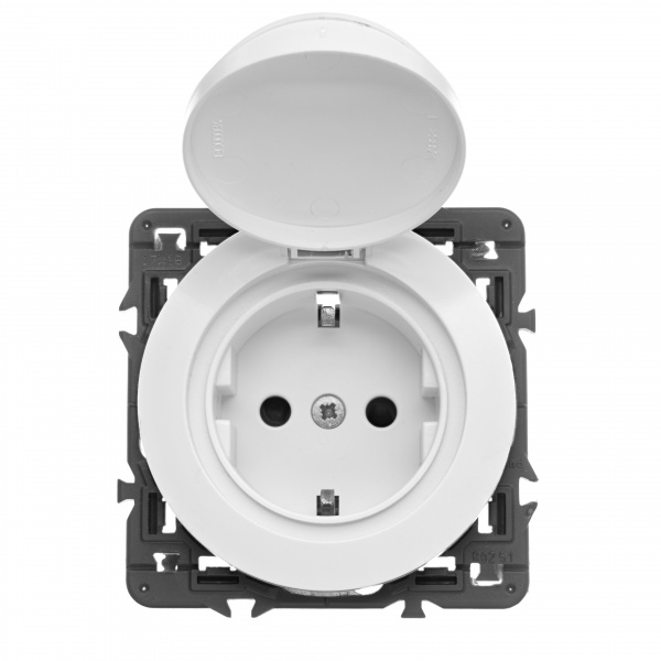 Legrand Celiane - розетка 2К+3 немецкого стандарта с защитной крышкой - IP 44 - белый