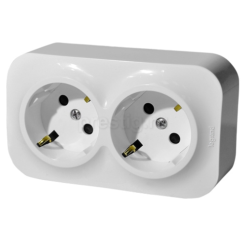 Legrand Quteo Розетка 2-ая с/з белая со шторкой
