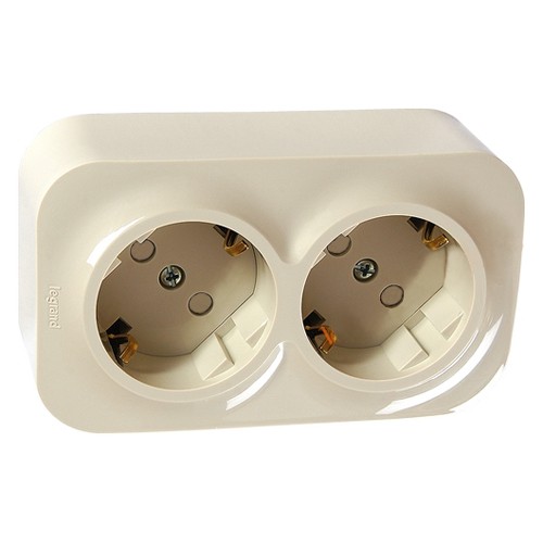 Legrand Quteo Розетка 2-ая с/з крем со шторкой