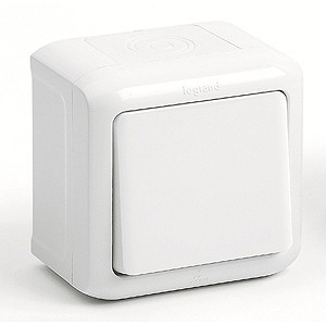 Legrand Quteo Выключатель 1 кл. полугерм. проходной (IP-44) белый