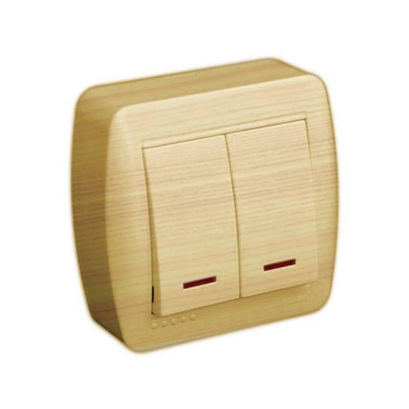 Lezard ДЕМЕТ выключатель 2 кл. с подсв. ясень
