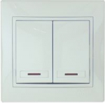 Lezard MIRA выключатель 2 кл. с подс. белый