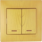Lezard MIRA выключатель 2 кл. с подс. Ольха