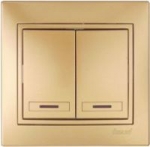Lezard MIRA выключатель 2 кл. с подс. Золото