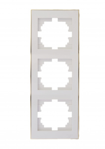 Lezard RAIN рамка 3-ая вертикальная белая с боковой вставкой золото