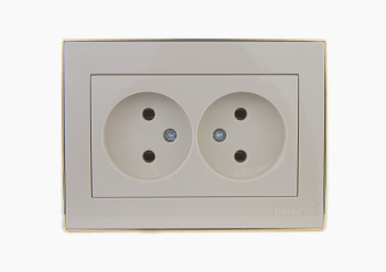 Lezard RAIN розетка двойная без заземления керамика крем с боковой вставкой золото