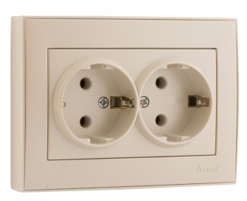 Lezard RAIN розетка двойная с заземлением керамика крем