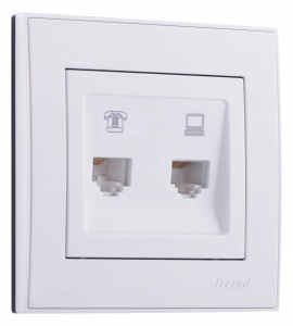 Lezard RAIN розетка компьютерная + телефон механизм белая