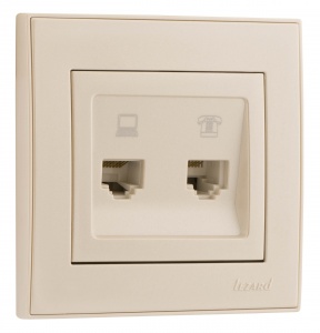Lezard RAIN розетка компьютерная + телефон механизм крем