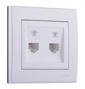 Lezard RAIN розетка телефонная 2-ая евро механизм белая