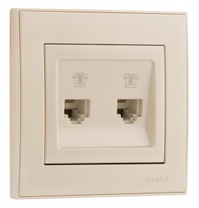 Lezard RAIN розетка телефонная 2-ая евро механизм крем
