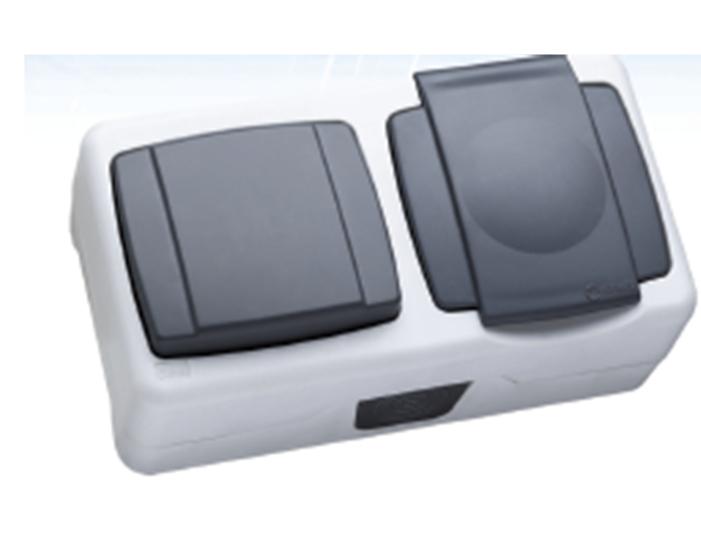 Макел IP55 герметик блок выключатель 1 кл. + розетка с крышкой серый