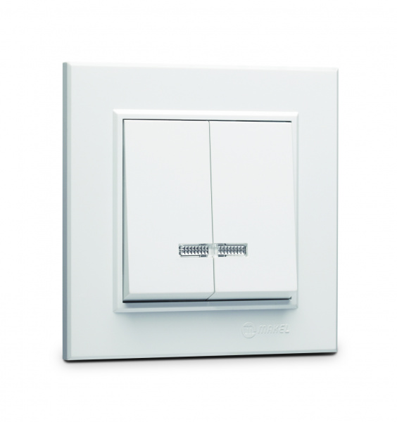 Makel Karea белый выключатель 2-клавишный с подсветкой