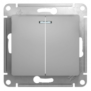 Schneider electric GLOSSA 2-клавишный ВЫКЛЮЧАТЕЛЬ с подсветкой, сх.5а, АЛЮМИНИЙ