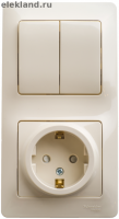 Schneider electric GLOSSA БЛОК: розетка с заземлением со шторками+2-кл.выкл, крем