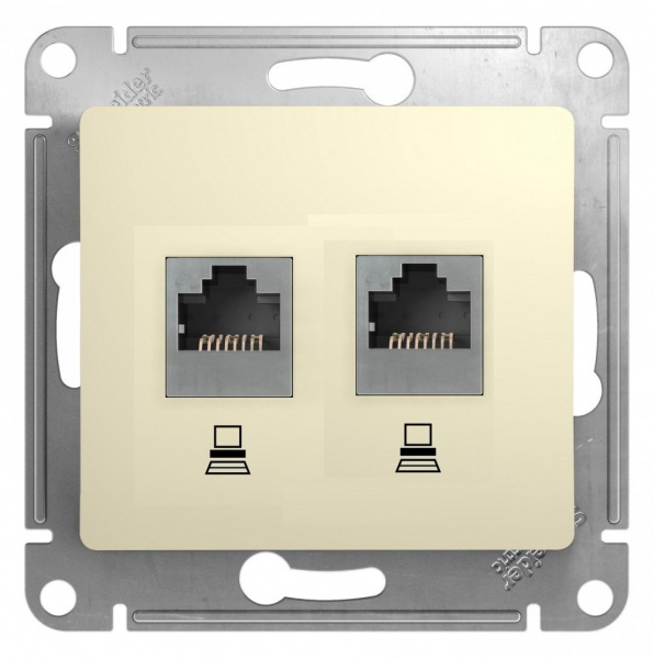 Schneider electric GLOSSA РОЗЕТКА двойная компьютерная RJ45+RJ45, кат.5E, механизм, МОЛОЧНЫЙ