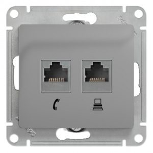 Schneider electric GLOSSA РОЗЕТКА двойная RJ11+RJ45, кат.5E, АЛЮМИНИЙ