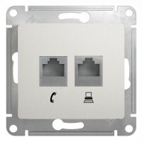 Schneider electric GLOSSA РОЗЕТКА двойная RJ11+RJ45, кат.5E, механизм, ПЕРЛАМУТРОВЫЙ