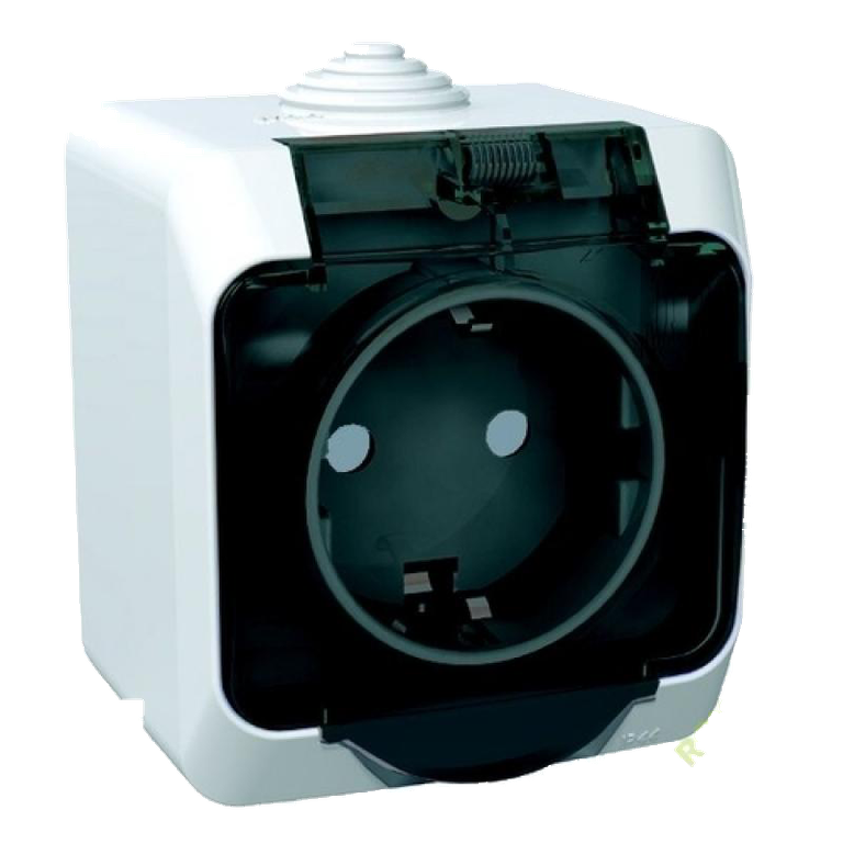 Schneider Этюд IP44 розетка 1-я с прозрачной крышкой белая