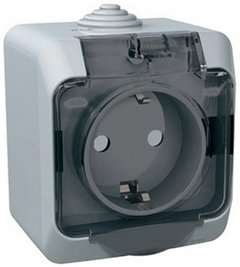 Schneider Этюд IP44 розетка 1-я с прозрачной крышкой серая