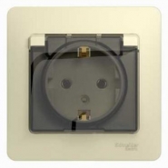 Schneider GLOSSA розетка с/з с крышкой/шторкой IP20 крем в сборе