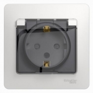Schneider GLOSSA розетка с/з с крышкой/шторкой IP44 белая в сборе